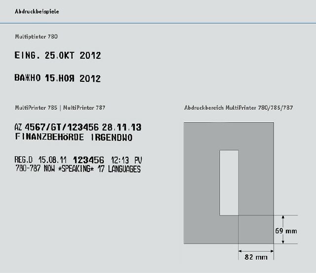 - Wie Modell 785, mit Chipkarte und halbautomatischem zweizeiligem Abdruck.